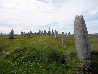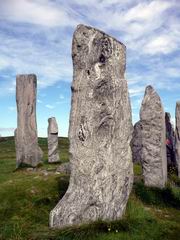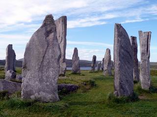 Menhiry (vztýčené kamene) v Callanish na Hebridách tvoria